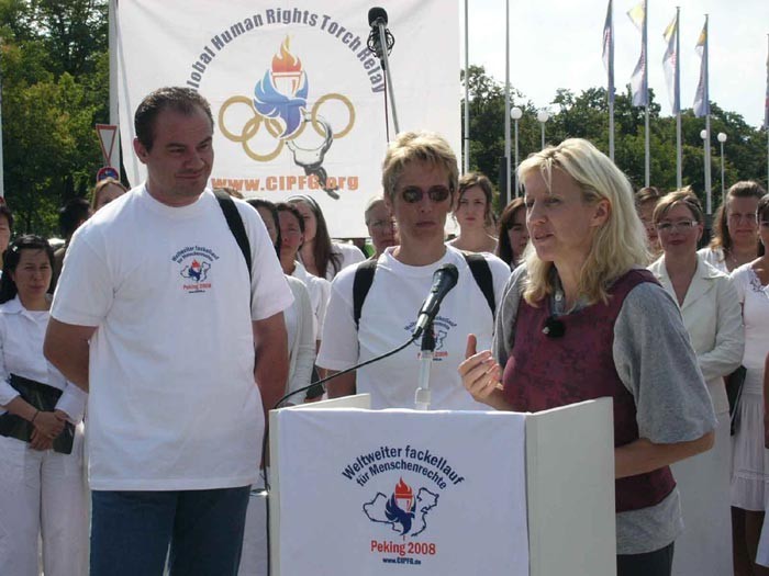 人权圣火传递奥地利图为国际人权组织奥地利分部主席卡特琳娜•格利普发言2007-9-11
