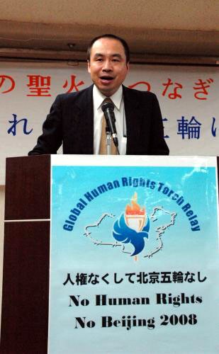 人权圣火抵达日本 前国会议员中津川指出法轮功问题不解决 中共无资格举办奥运2008-6-18