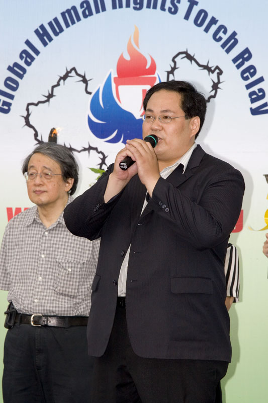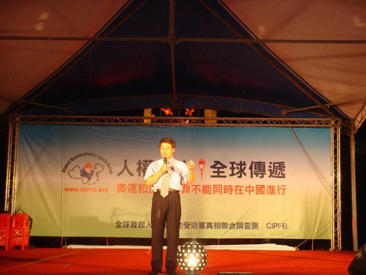台湾宜兰县主办人权圣火之夜,声援反迫害图为罗东镇长林聪贤致词声援反迫害2008-5-31