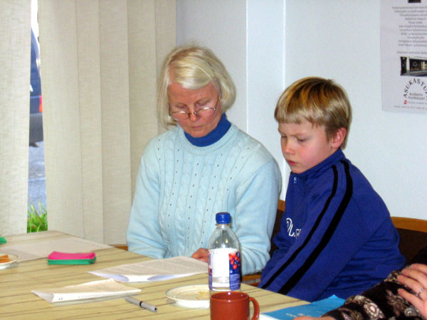 芬兰学员斯妮卡和儿子萨姆利一起,学法.2006-01-12