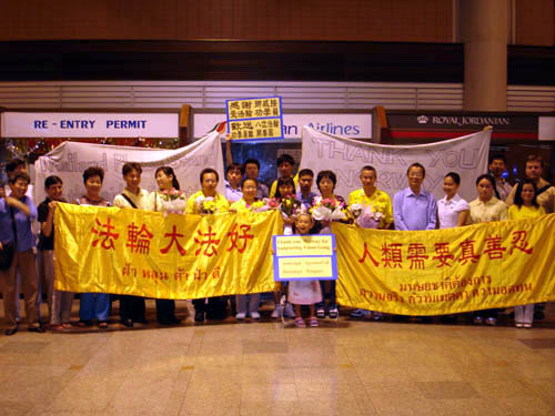 曼谷国际机场,法轮功学员为前往挪威的八名法轮功学员送行2006-1-24