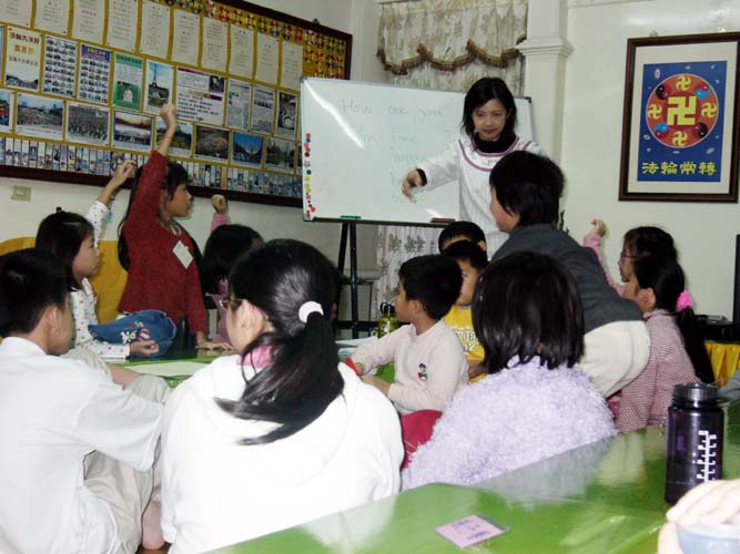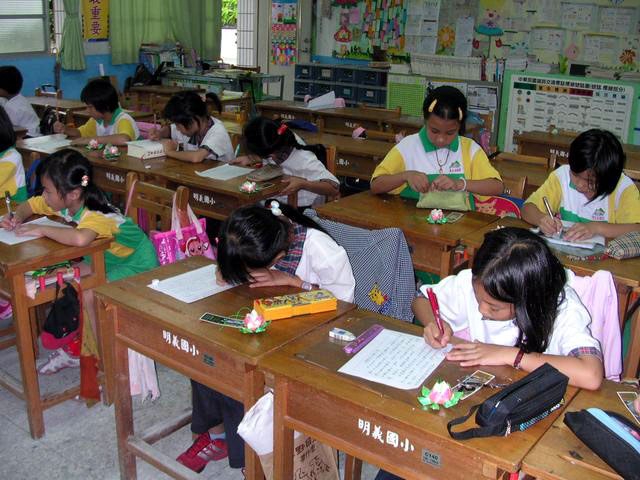 台湾汐止明慧学校举办2006年夏令营活动,图为小弟子们一齐上课
