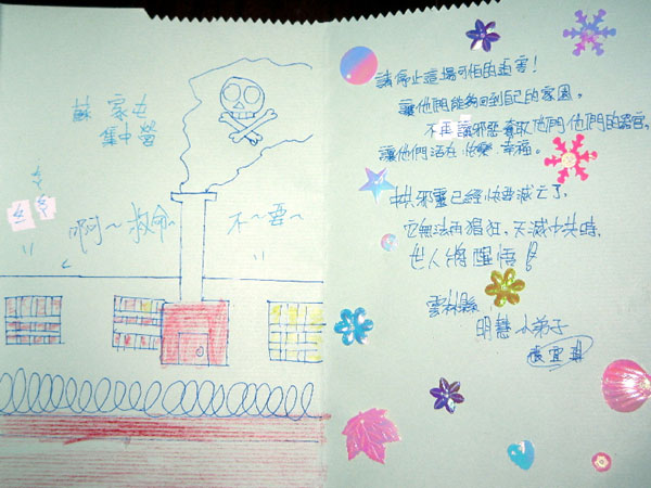 明慧学校小弟子的活动图为签名营救遗孤