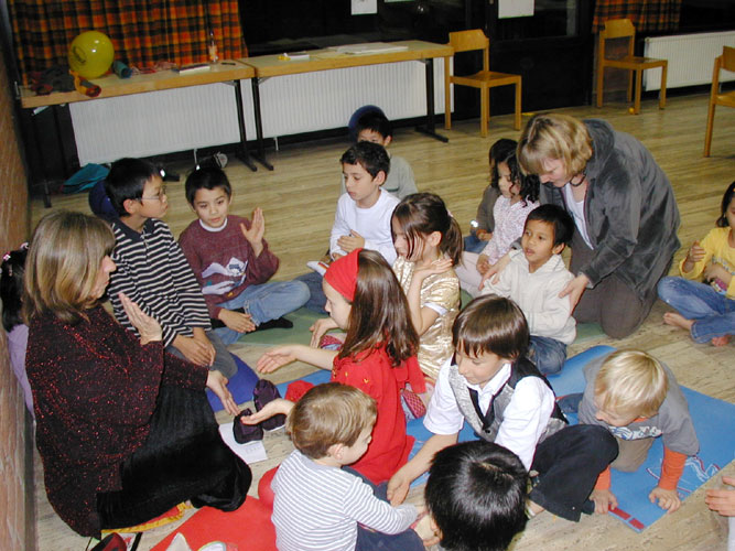 德国法轮功学员开办明慧学校,图为老师在教孩子们学炼第五套功法 2006-27-29