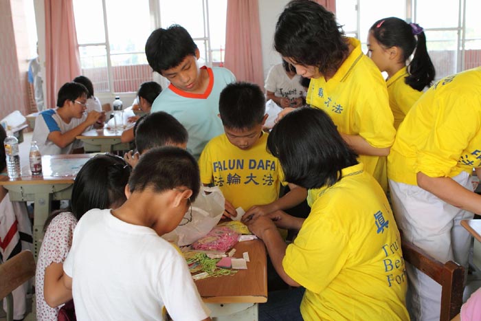 台湾汐止明慧学校举办2006年夏令营活动,图为小弟子们专心学习美术劳作