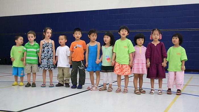 多伦多明慧学校豆豆园的小弟子们在唱“法轮大法好”