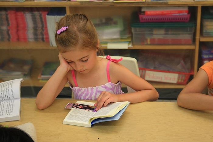 明慧学校夏令营的法轮大法小弟子在学法