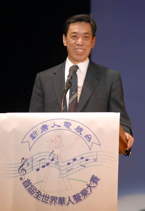 首届全世界华人声乐大赛圆满落幕图为新唐人总裁李琮向所有参赛选手表示祝贺。2007-10-17