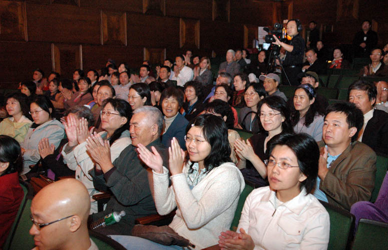 神韵艺术团为声乐大赛参赛者及纽约人做专场晚会演出图为现场观众受感动2007-10-17