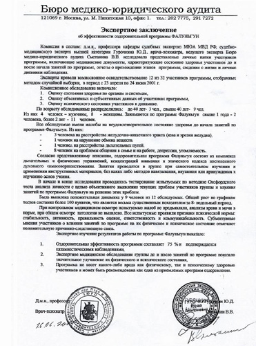 俄罗斯莫斯科市政府企业家管理委员会司法医学检查处对法轮功祛病健身效果的鉴定报告