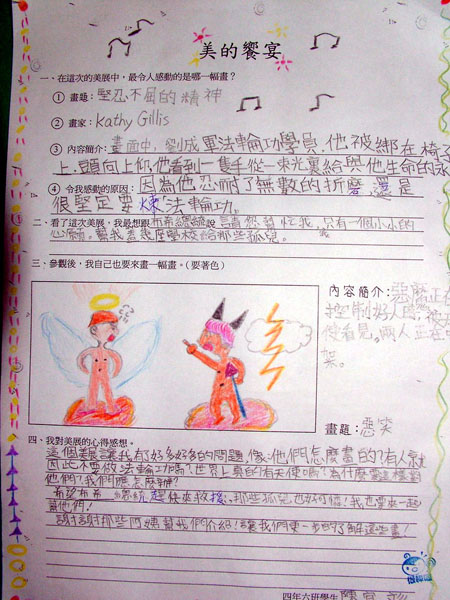 台湾花莲小学生们参观“真善忍国际美展”之后的学习单
