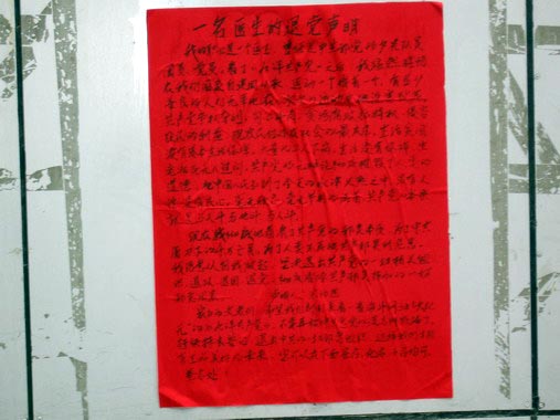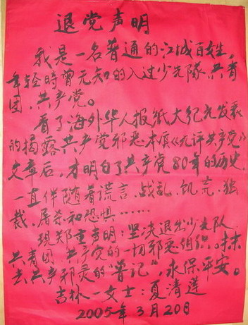 2005年6月15日,黑龙江省七台河市街头出现了退党声明