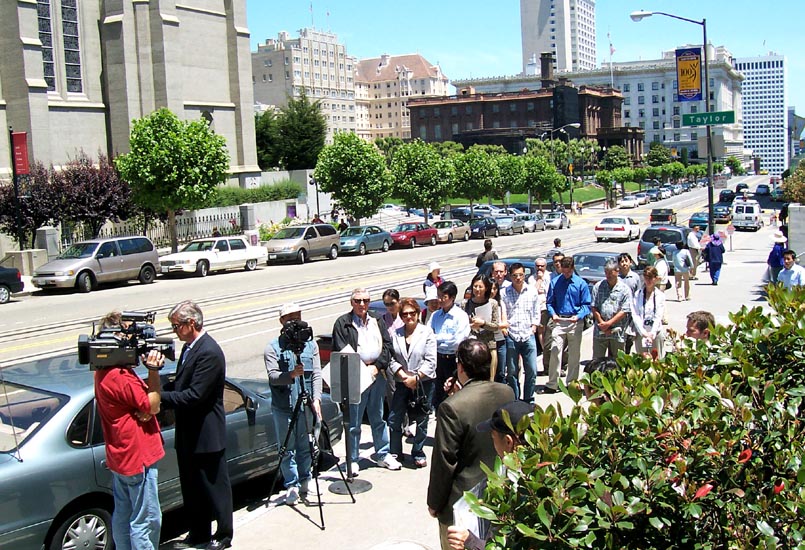 中国死尸在旧金山展出,多个组织在旧金山美生堂前召开新闻发布会,呼吁关注中国人权