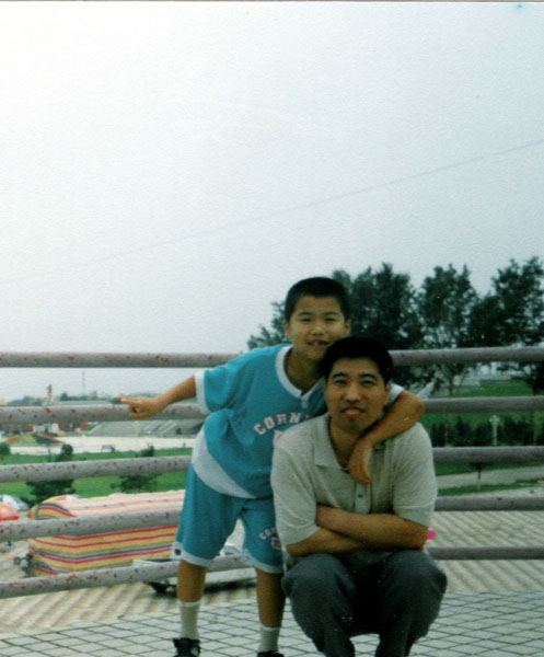 黑龙江大庆市法轮功学员许基善在大庆监狱被五个犯人在狱警的指使下用水呛死 图为许基善和儿子