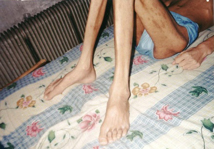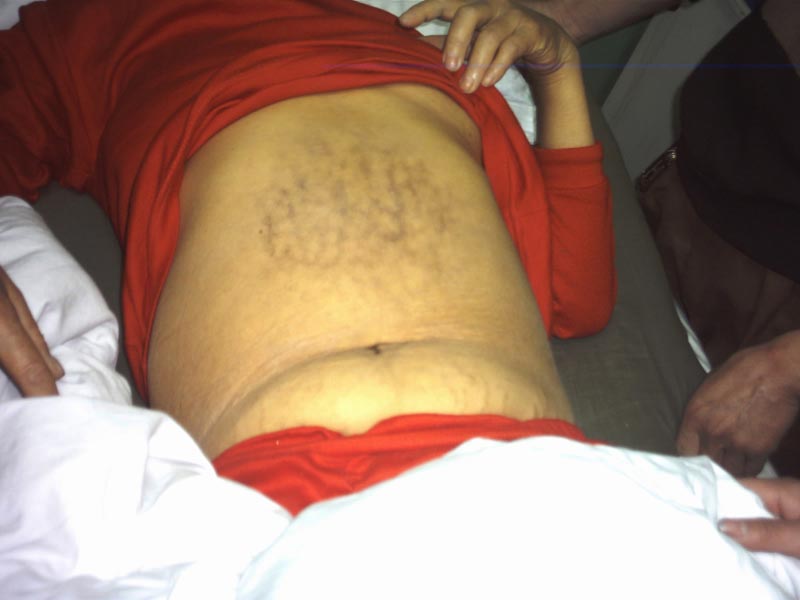 郝迎强 (吉林延吉市) 遭吉林监狱恶人酷刑摧残,2006年6月8日含冤离世,终年49 岁。图为遭摧残后的腰部
