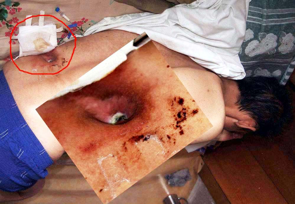 杨晓杰 (石家庄) 被河北省第四监狱虐杀,终年40岁。图为杨晓杰去世后的胸部照片 2006-1-26