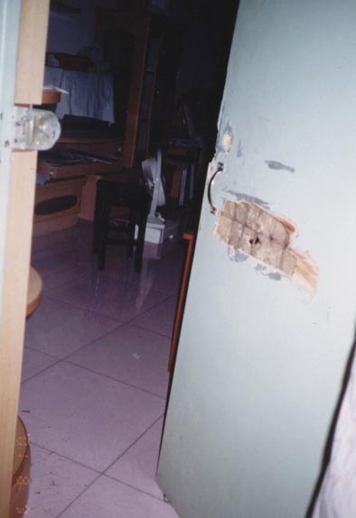 秦皇岛教师化智凯被秘密绑架、家门多次被撬 图为门被撬情况的照片2006-4