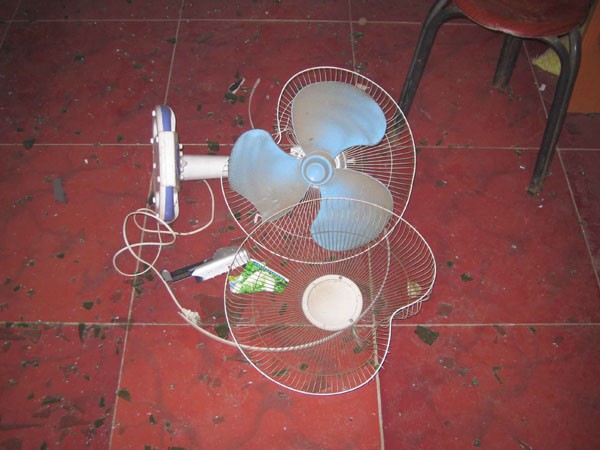 “六一零”光天化日连砸两所民宅图为被砸坏电风扇