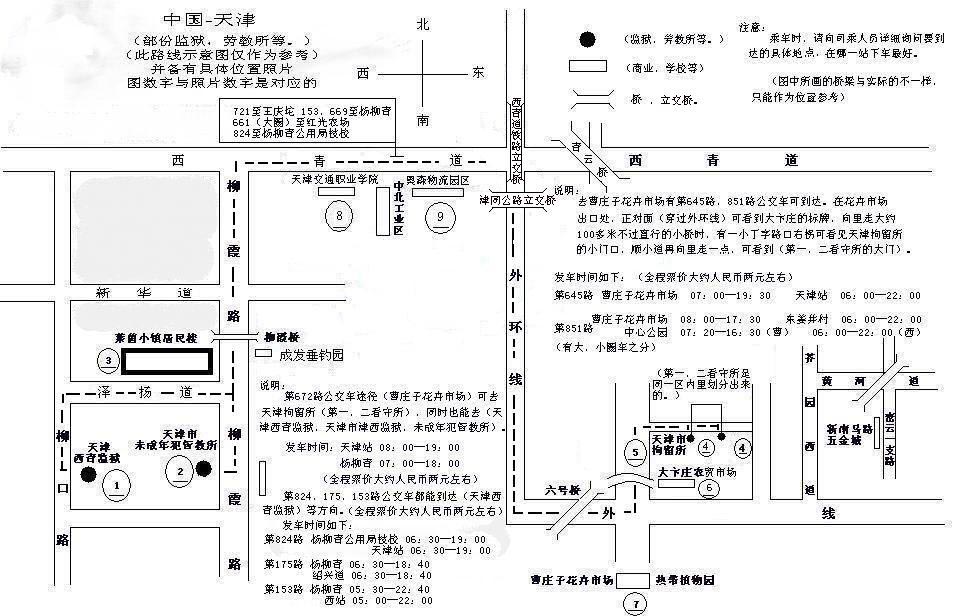 关押迫害大法弟子的黑窝天津市监狱和劳教所示意图