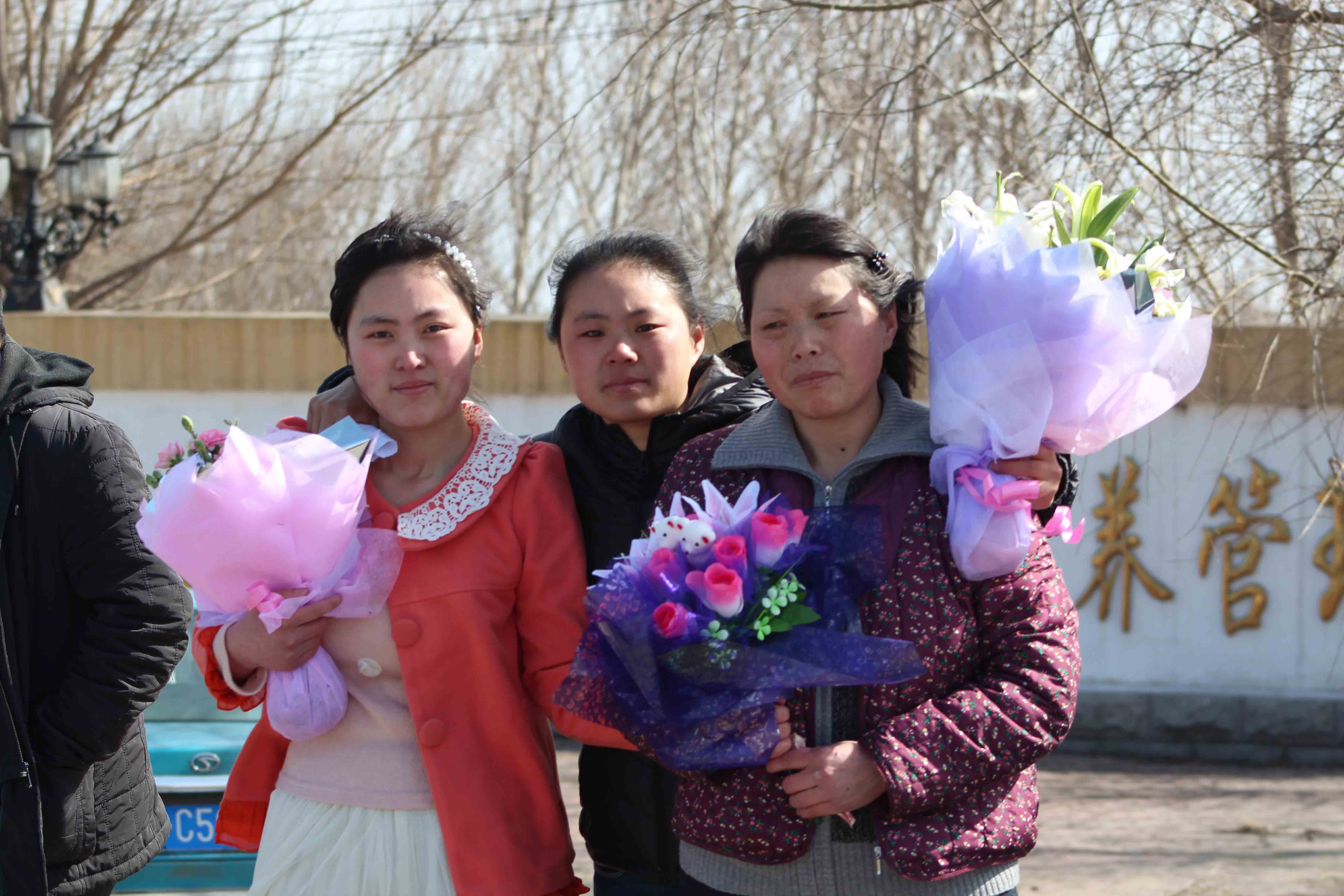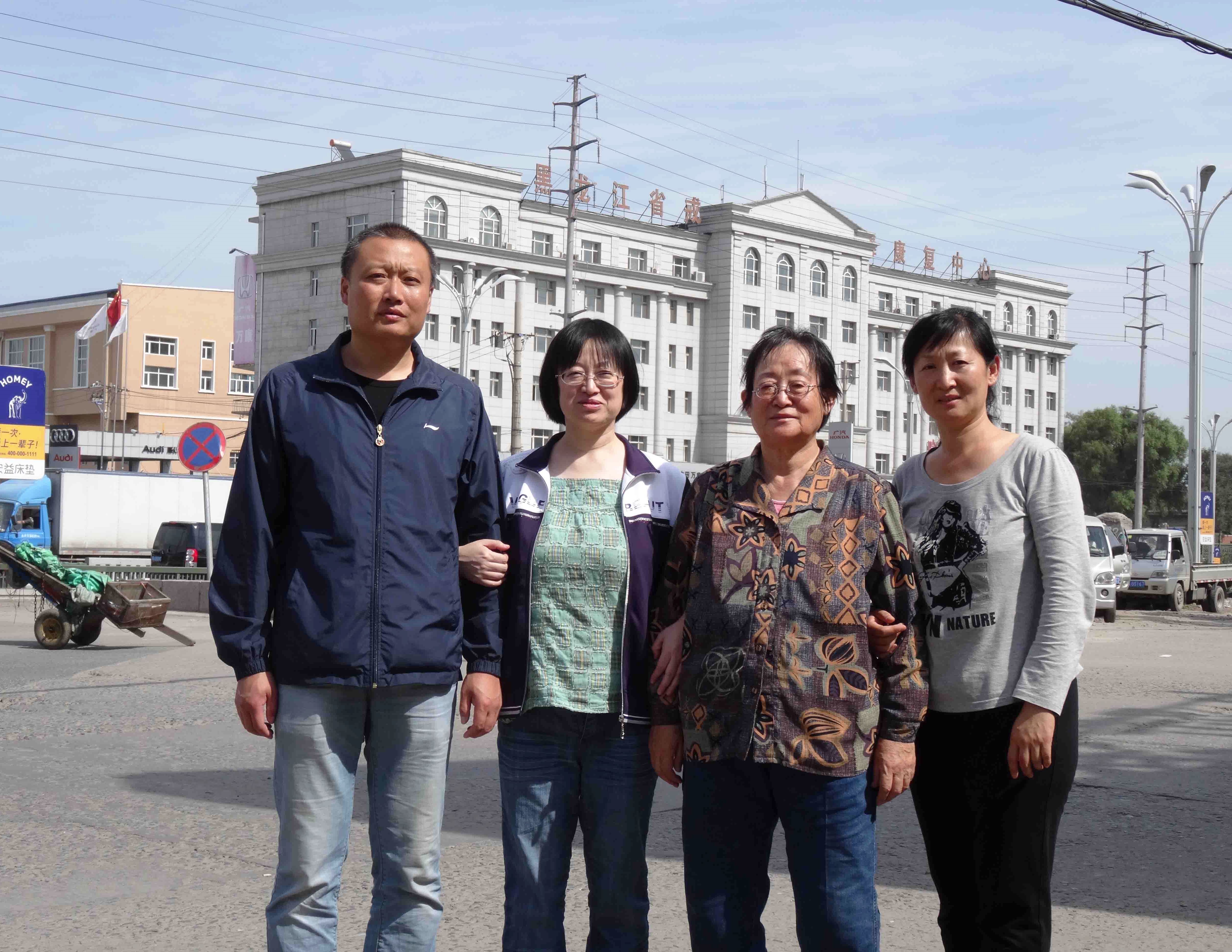 黑龙江省劳教所解散图为刘丽杰(左二)在劳教所楼前与家人合影