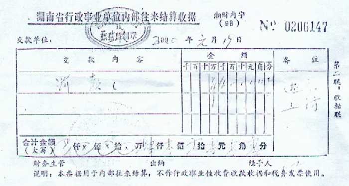 湖南某单位2000年1月19日以“进京上访”为由对某法轮功学员罚款4000元人民币的收据