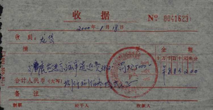 四川省社会科学院历史研究所龙岱先生(不炼功),因妻子鹿燕(修炼法轮功)到京上访而被强行索取所谓“遣返费”3832元及无理罚款5000元的收据