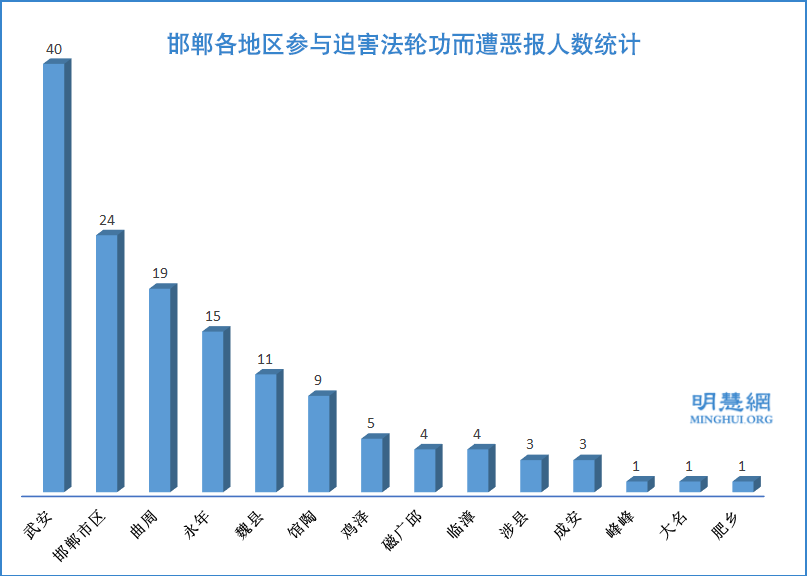 邯郸各地区参与迫害法轮功而遭恶报人数统计