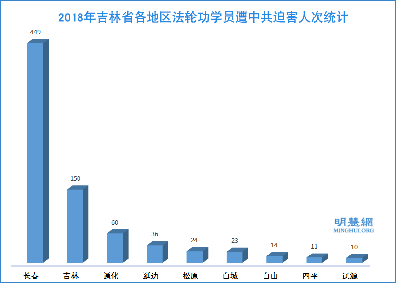 2018年吉林省各地区法轮功学员遭中共迫害人次统计】