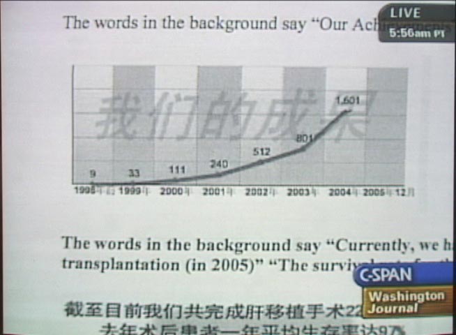 国内仅一家医院器官移植数量从1999年至今就上升到 2200例 而1999年正好就是中共开始迫害法轮功的年份