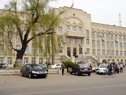 吉林八旬祖母为因修炼法轮功被迫害致死的孙子喊冤 后边有不明身份的人(可能是国安)在摄像2006-5-12