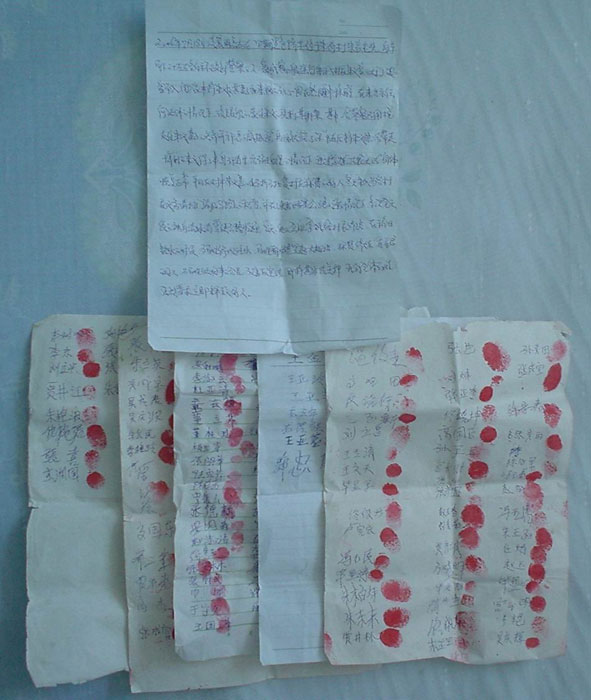 成都中院欲悄然了结诬判案,大法学员家属联名抗争图为家属们的申诉书及签名