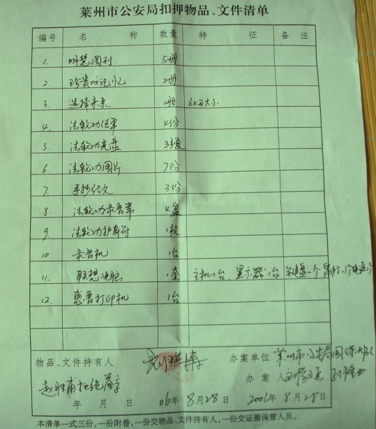 邪恶迫害大法弟子的书证实物照片 2006-5