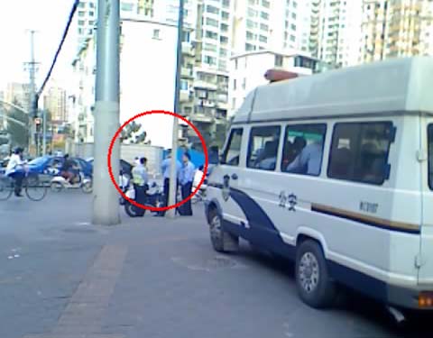 上海徐汇区对法轮功学员非法庭审 场外警察层层设防2008-10-21