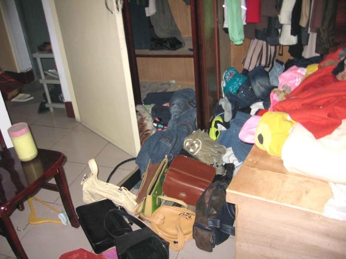 法轮功学员锦州王丽阁和女儿被绑架图为恶警抄家后的状况