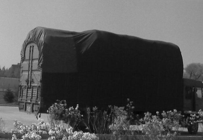 关押大法弟子的黑窝黑龙江省女子监狱图为给监狱工厂运送加工服装布料的货车