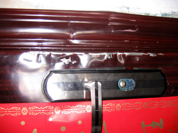 大庆优秀教师赵玉珍被恶警劫持非法劳教图为恶警指使开锁大王撬坏的家门上的锁头