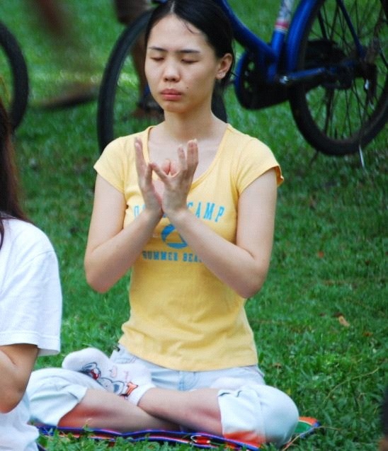 十三岁小弟子梁艳在迫害中被迫失学 图为梁艳来到国外后在发正念