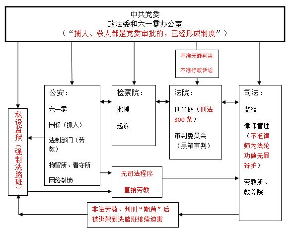 中共政法系统迫害法轮功示意图