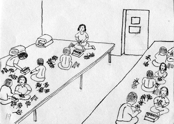 沈阳张士教养院残害法轮功学员,图示奴工劳动“插皮子”和沈阳海威饰品有限公司的成品梳