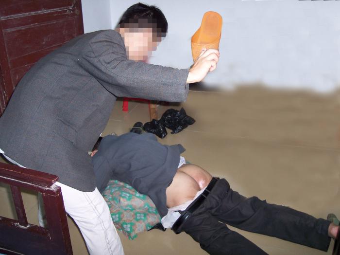 湖北大法弟子廖元华在范家台监狱所受酷刑示范: 鞋子打臀部