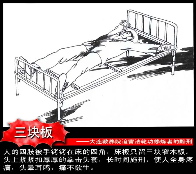 图片:大连教养院迫害法轮功修炼者的酷刑---三块板