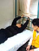 沈阳张士教养院迫害法轮功学员的部分手段演示图 --- 1、上绳绑腿