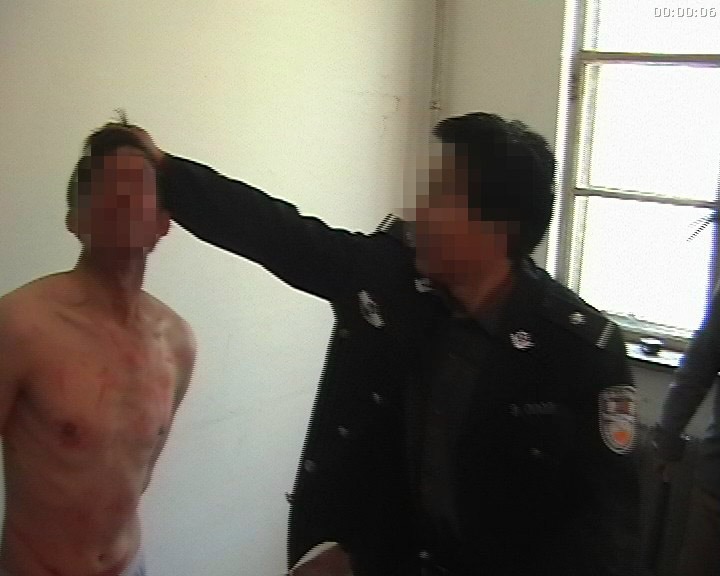 酷刑演示:辽宁法轮功学员吕宏伟在朝阳县公安局被扒光衣服残暴殴打