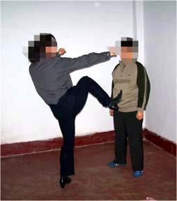 酷刑图示:辽宁锦州劳教所迫害法轮功学员手段:“窝心脚”