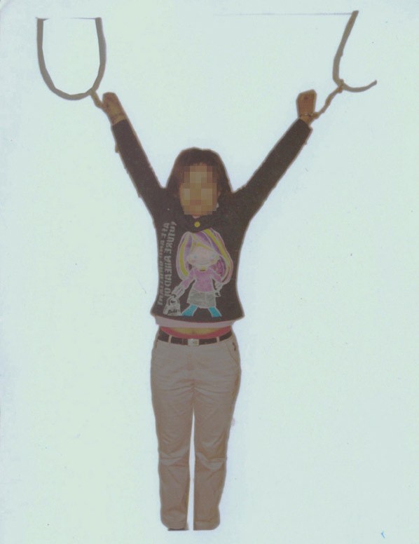 “吊背铐”(酷刑真人演示图)