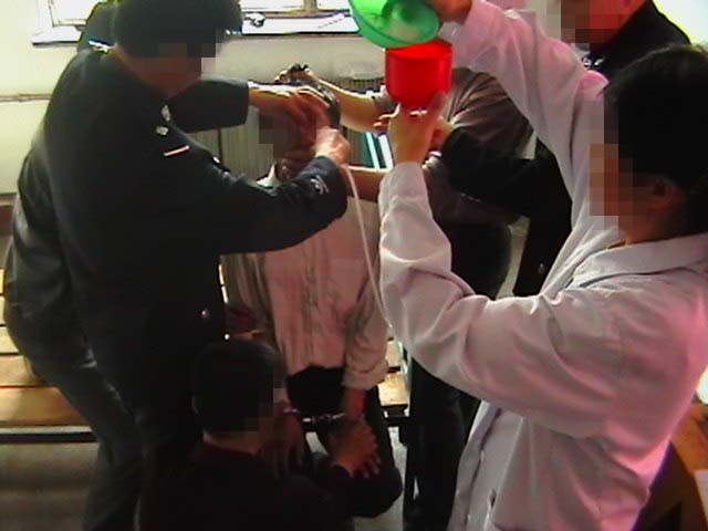 “摧残性灌食”(酷刑真人演示图)