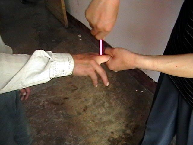 “拔指甲”(酷刑真人演示图)