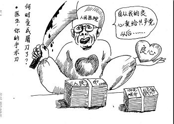 漫画:大陆医院参与非法活体盗取法轮功学员器官的暴行