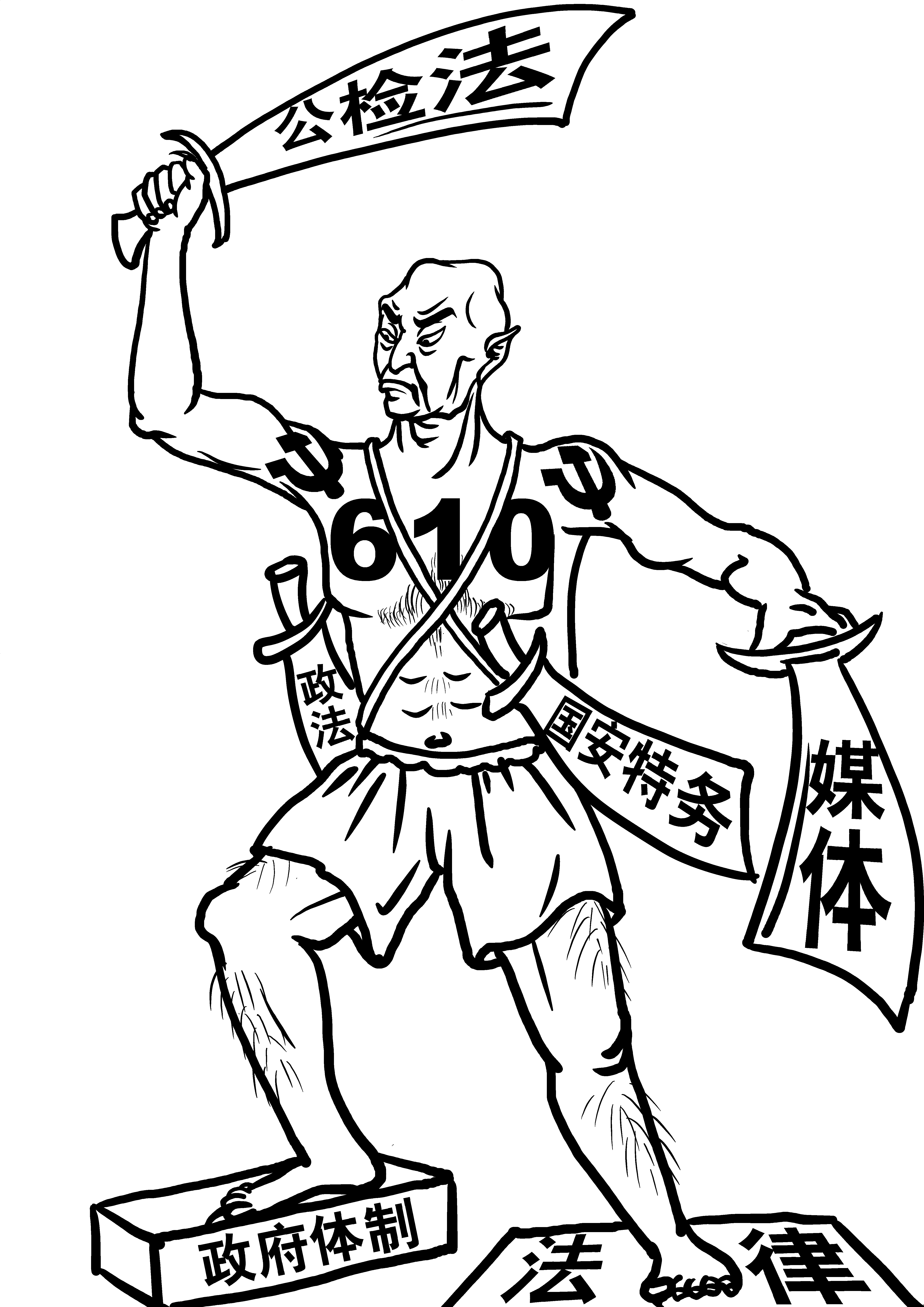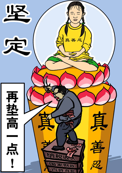 日内瓦论坛报3月20日漫画,原标题为“法轮功不畏中国政权”