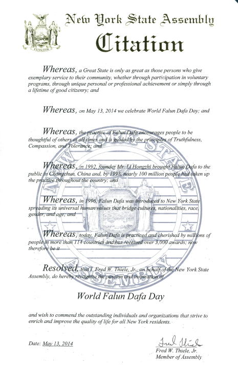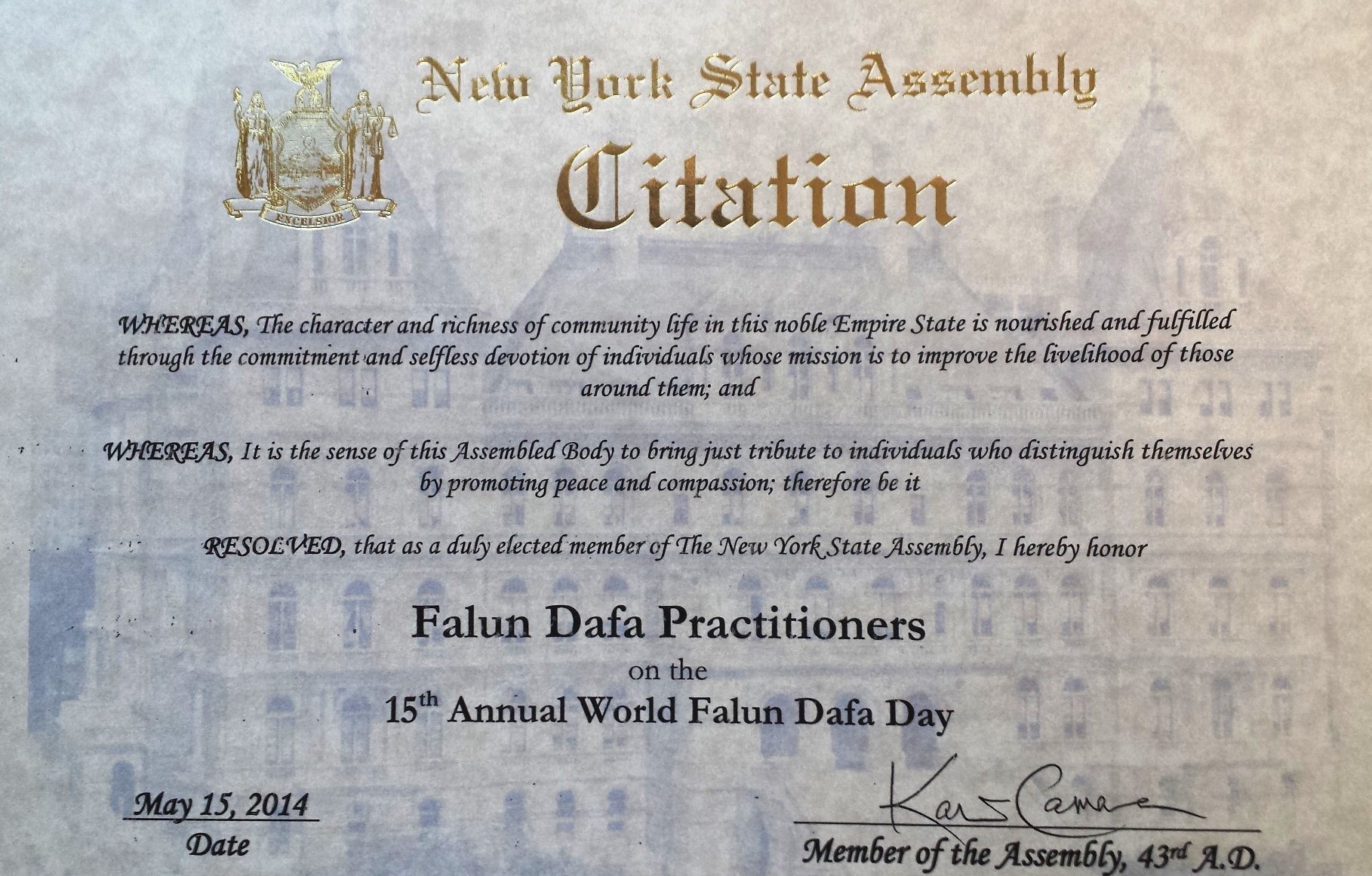 纽约州十六位众议员颁发褒奖祝贺“世界法轮大法日”